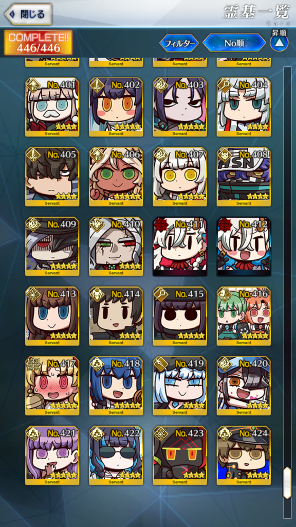ずーっとコツコツ取り組んでいました、所持鯖全員スキル9以上の取り組みが終わりました~ついに!!!!