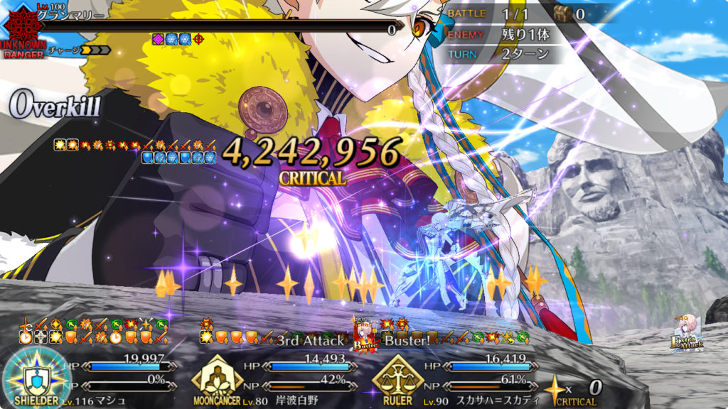 これによってグランマリーに対敵注視がつきます(マシュの火力が上がる)。