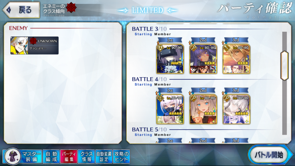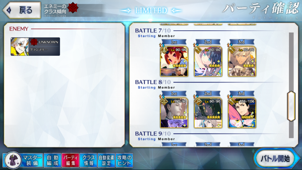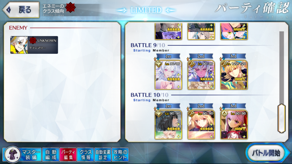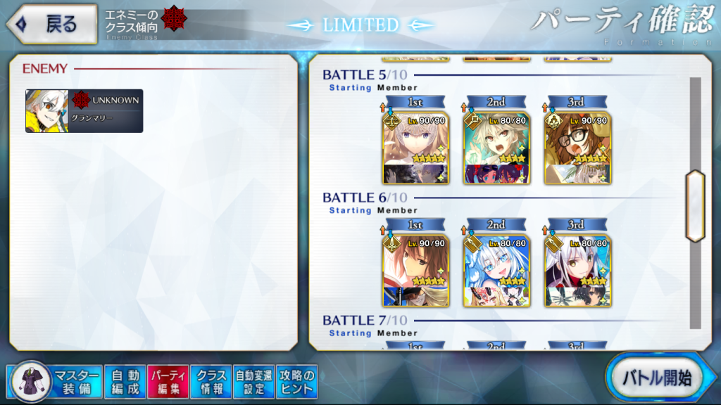 9パーティ目くらいで、「え、これいける????」ってあせってたんだけど、最後はあっさり勝てました。オベロンの夢の終わり使わなかったです。