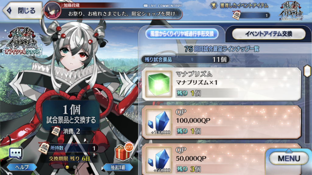 景品に骨があったからもうちょっと頑張りたかったのだけれども、FGOに割ける時間があまりなかった。FGOに支配されなくなってきている気がします。
